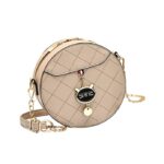 Stylish Vegan Leather Round Sling Handbag for Women and Girls with Tassel and Removable Belt | Sling bag | Crossbody | Satchel | Gift for Women | Trendy | Bag | Ladies Purse | Side | Shoulder | Fashion | Branded |-Cat Beige