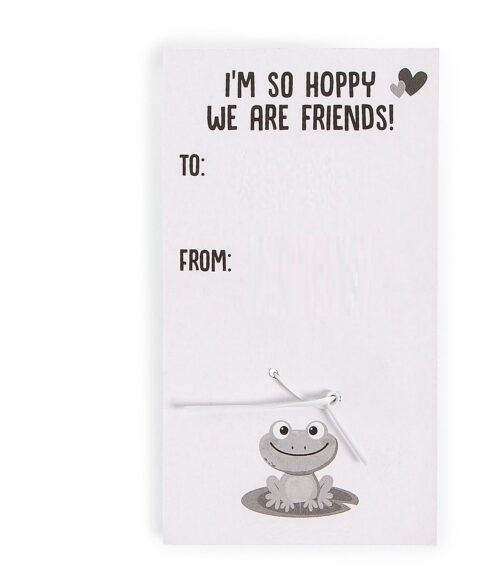 Simply attach the toys to the included frog-themed Valentine’s Day card for an easy classroom exchange pick or giveaway at Valentine’s Day parties.