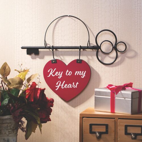 The key to your heart A Cupid-approved addition to Valentine’s Day home décor, this sign comes with a big red heart and an even bigger key