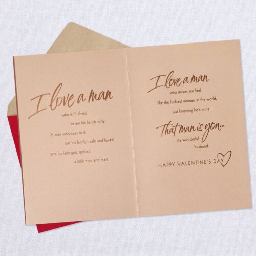 Inside Message: I love a man who isn’t afraid to get his hands dirty. A man who sees to it that his family’s safe and loved and his lady gets spoiled a little now and then. I love a man who makes me feel like the luckiest woman in the world, just knowing he’s mine. That man is you… my wonderful husband. Happy Valentine’s Day