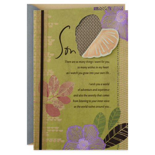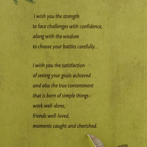Inside Message: I wish you the strength to face challenges with confidence, along with the wisdom to choose your battles carefully… I wish you the satisfaction of seeing your goals achieved and also the true contentment that is born of simple things—work well-done, friends well-loved, moments caught and cherished. And my greatest wish is that you will always remember how much you are loved—for you are a good and caring person… a man I am proud to have for a son. Happy Birthday