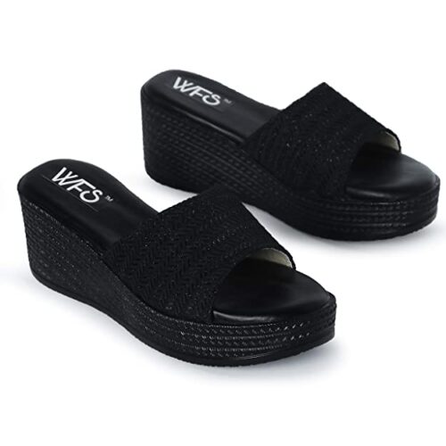 Women Black Wedges Sandal 2.5 Inch Heel–3uk- Black