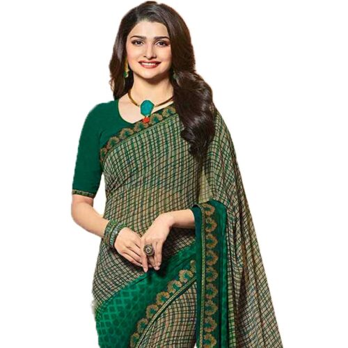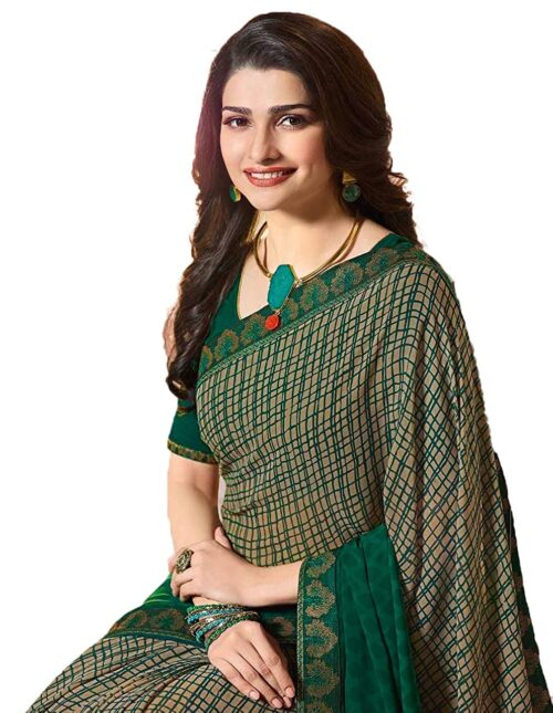 Be the first to review “Women Pure Georgette Unstitched Saree with Blouse Pieces-dark green”