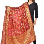 Women’s Art Silk Banarasi Bandhej Ghatchola Marron