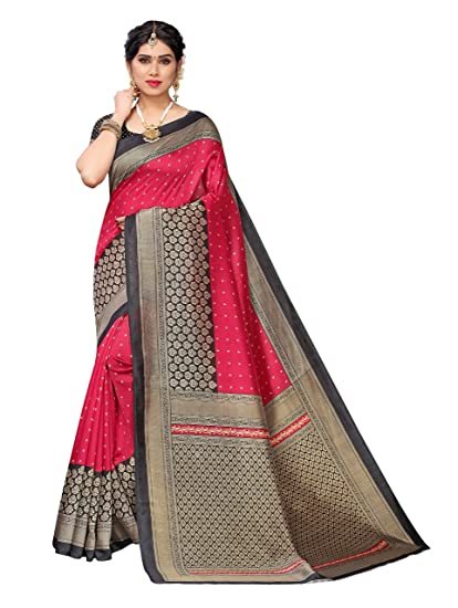 Women’s Art Silk Printed Saree with Blouse Piece black