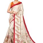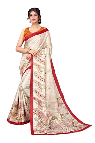 womens Art Silk Printed Saree With Blouse Piece Red 2