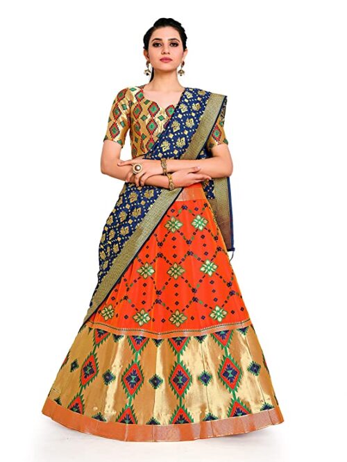 Women’s Art Silk Semi-Stitched Lehenga with Unstitched Blouse and Dupatta