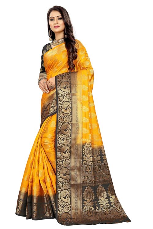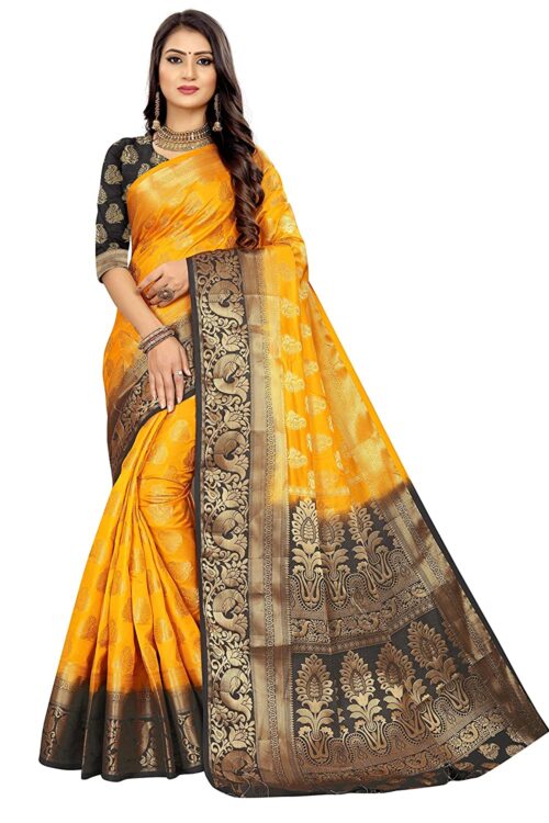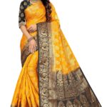 Women’s Banarasi Art Silk Saree With Unstitched Blouse Piece-mustard