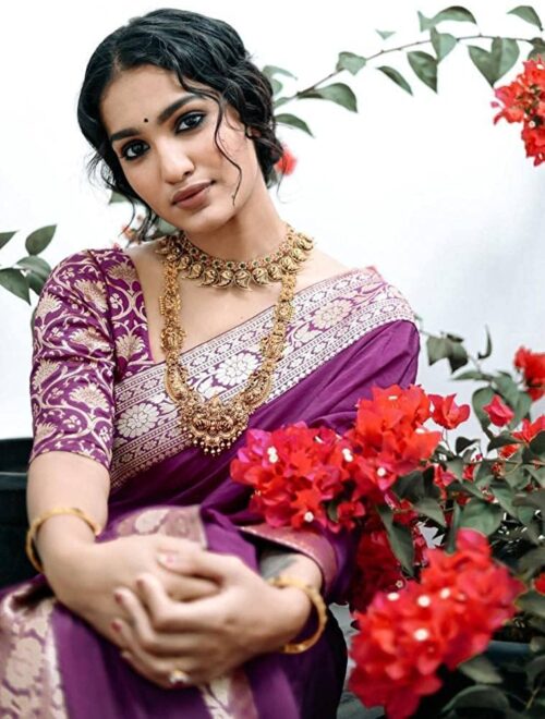 Women’s Banarasi Kanjivaram Jacquard Soft Lichi Silk Saree Beautiful Rich Pallu Or Border Zari Work Saree Collection With Silk Blouse Piece (Purple)