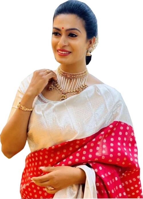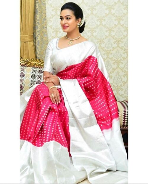 Women’s Banarasi Kanjivaram Style Silk Saree With Unstitched Blouse piece (Dark Pink)