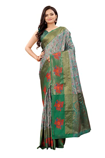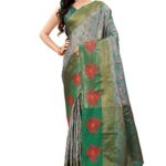 Women’s Banarasi Patola Silk Blend Saree with Blouse Piece Sky Blue