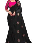 Women’s Banarasi Silk Saree With Unstiched Blouse Piece-Black