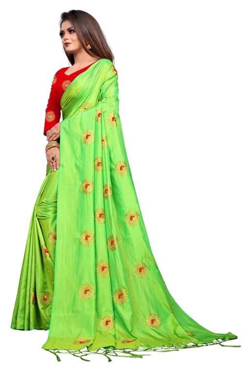 Women’s Banarasi Silk Saree With Unstiched Blouse Piece-Parrot