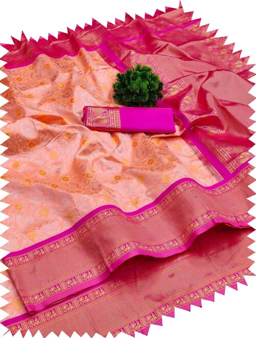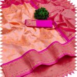 Women’s Banarasi Soft Lichi Silk Jacquard Saree For Women Zari Woven Rich Pallu Saree With Banarasi Silk Blouse Piece (Pink)