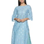 Womens Boat Neck Printed Kurta-Blue-42