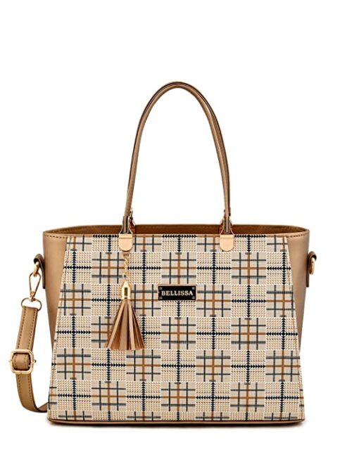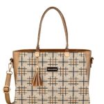 Women’s Checked Printed Artificial Leather Satchel Bag | Ladies Purse Handbag Tote Bag Shoulder Crossbody | Girl’s Office & College Shoulder Ba-Gold