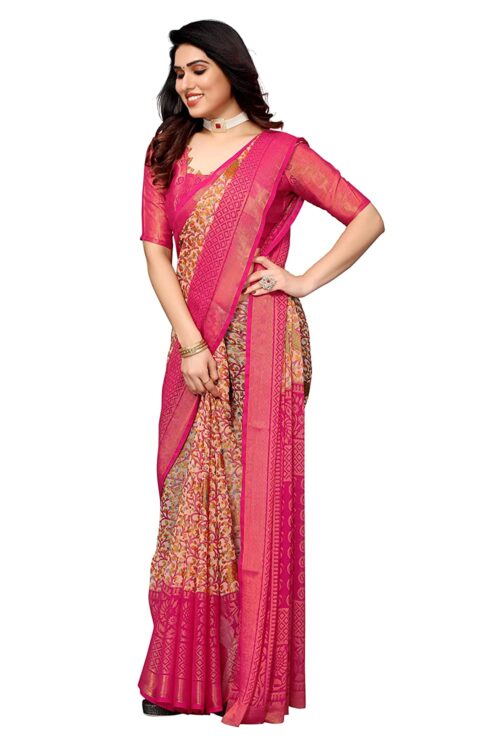 Be the first to review “Women’s Chiffon Brasso Printed Saree with Blouse Piece (Pink)”