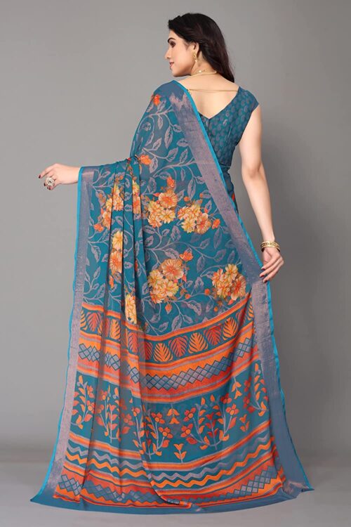Women’s Chiffon Brasso Printed Saree with Blouse Piece-Rama