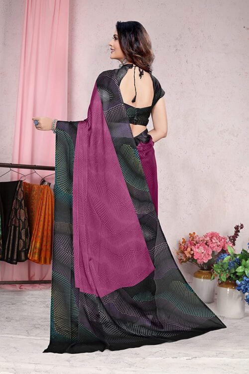 Women’s Chiffon Colorful Prints Saree with Blouse Piece-Magenta, Multi