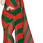 Be the first to review “Women’s Chiffon Lehriya Printed Saree Without Blouse – Red – Green”