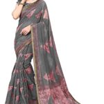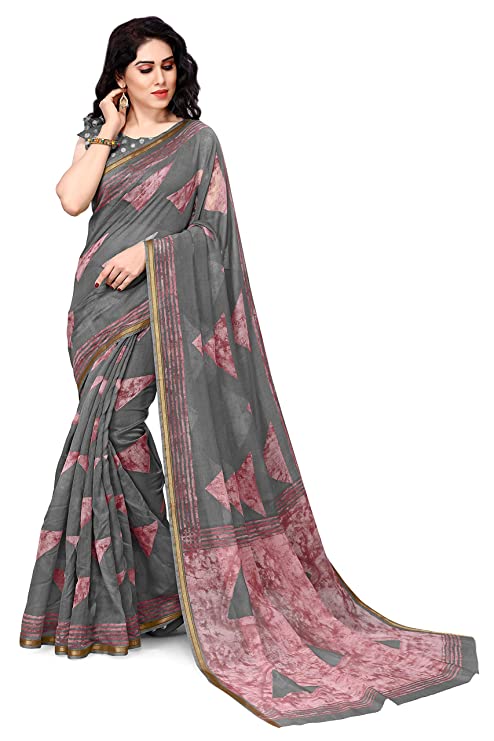 Women’s Cotton Blend Triangle Shibori Dyed New Fancy Printed Saree with Blouse Piece-Grey, Pink