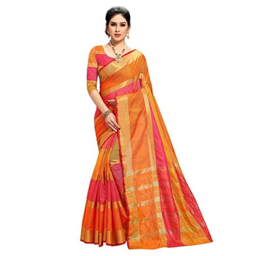 Women’s Cotton Kota Doria Saree with Unstitched Blouse Piece Orange