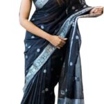 Women’s Cotton Linen Saree With Blouse Piece – Black