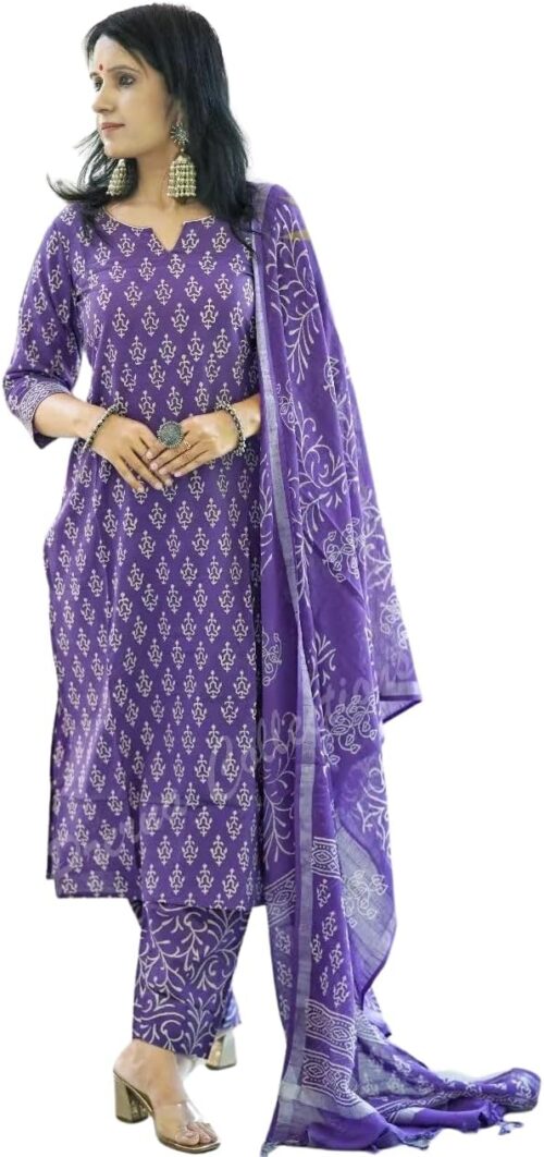 Be the first to review “Women’s Cotton Printed Straight Kurta With Palazzo & Dupatta Set”