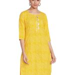 Women’s Cotton Straight Kurti -Yellow -S