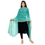 Women’s Embroidered Wool Dupatta-Sea Green