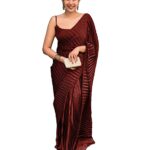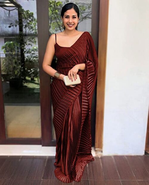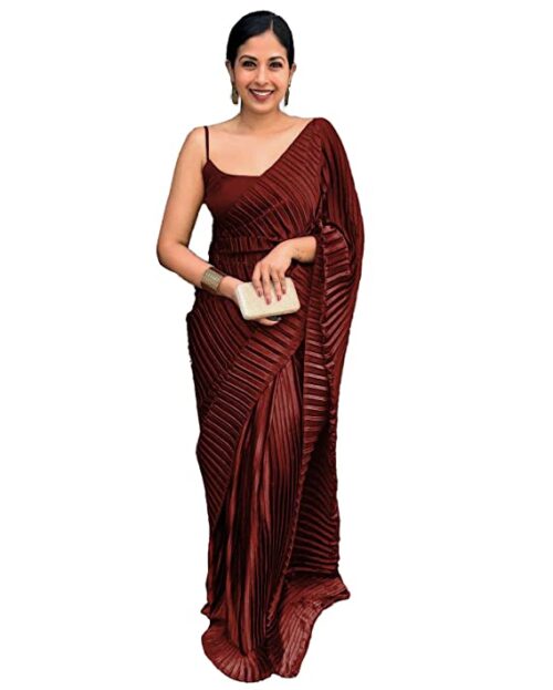 Be the first to review “Women’s Full Crushed/Pleated Satin Saree With Unstitched Blouse Piece -MARUN”