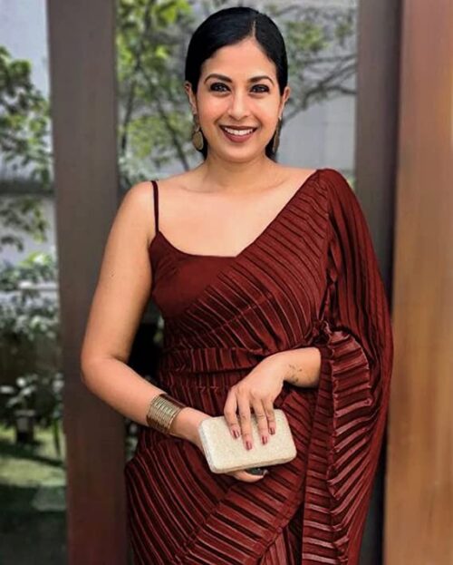 - Fabric : Heavy Satin || Type : Crushed/ Pleated Saree