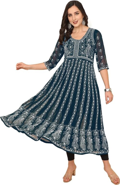 - Kurta Fabric – Georgette | Kurta Style: Anarkali | Kurta Work : Chikankari Embroidery