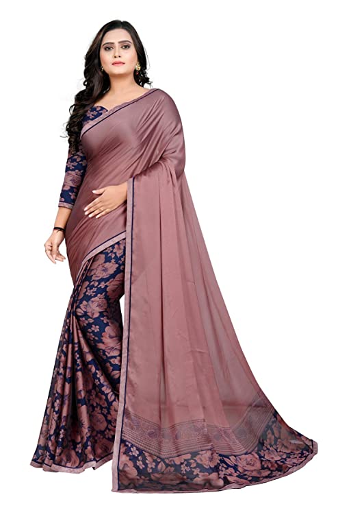 Women’s Georgette Crepe Printed Saree With Blouse Piece -: Orange