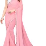 Women’s Georgette Mirror Work Saree With Blouse – Pink