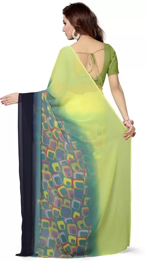 Women’s Georgette Printed Saree With Blouse Piece-Light Green