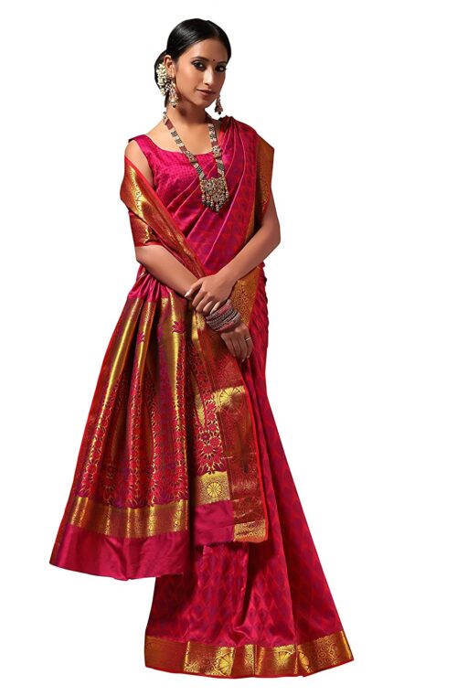 - Women’s Jacquard Silk Saree-PINK