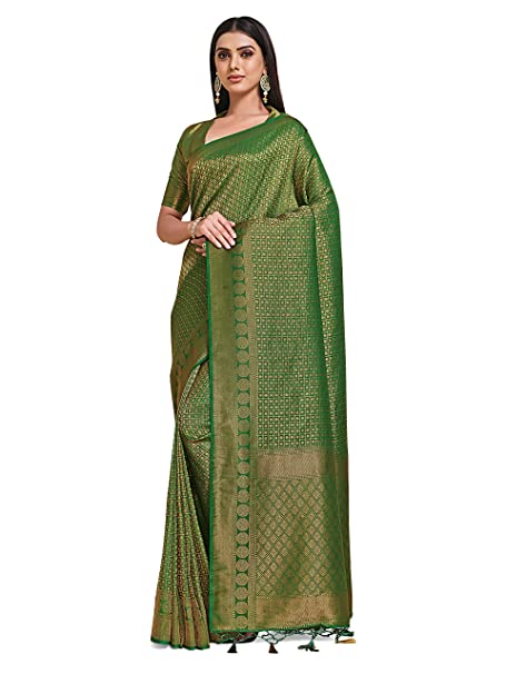 Women’s Kanchipuram Art Silk Saree With Blouse Piece Green)