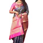 Women’s Kanjivaram Pure Soft Silk Handloom Saree Pure Golden Zari With Blouse Piece-Dark Blue