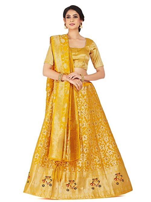 Women’s Multicolored Semi-Stitched Raw Silk Lehenga with Unstitched Blouse and Dupatta :