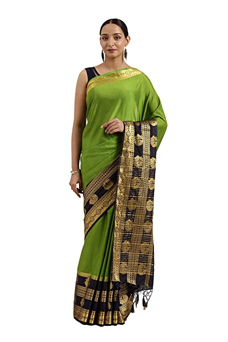 Women’s Mysore Silk Crepe Saree With Blouse Piece Olive Green)