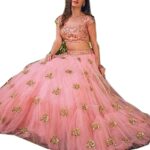 Women’s Net Semi-stitched Pink Lehenga Choli (L8049_Pink_Free size)