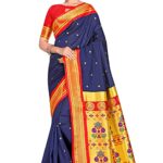 Women’s Paithani Soft Silk Kadiyal Maharani Saree With Blouse Piece- Navy Blue