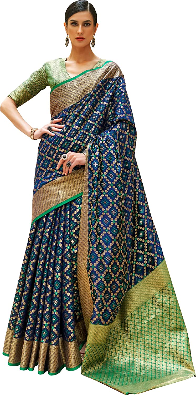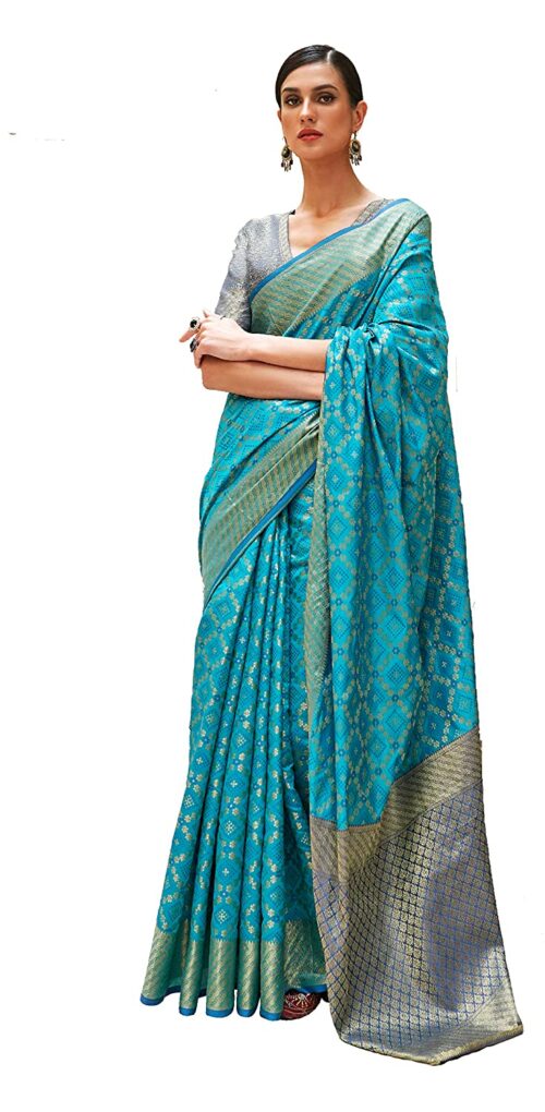 Women’s Patola Silk Saree With Unstitched Boluse Piece-FIROZY