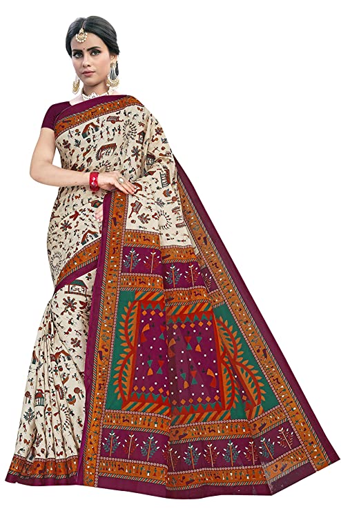 Be the first to review “Women’s Plain Weave Pure Cotton Saree Without Blouse Piece- Beige&Magenta”