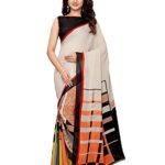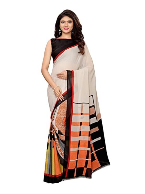 Women’S Printed Georgette Saree With Blouse Piece (Off White)