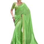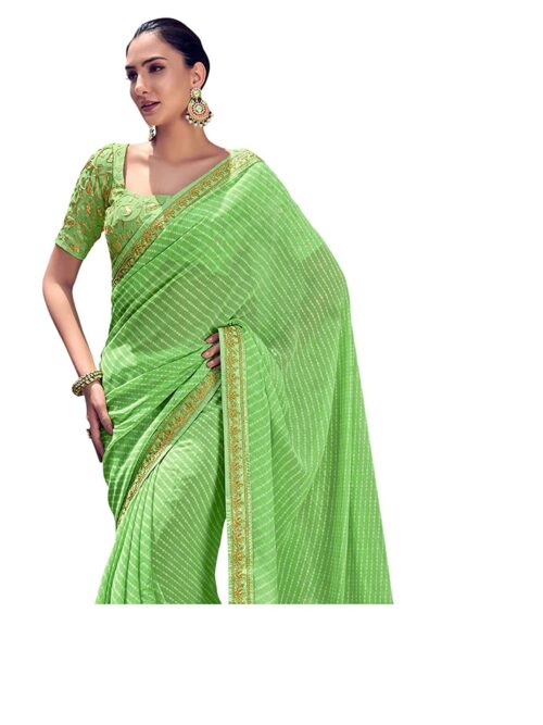 Be the first to review “Women’s Printed Leheriya & Lace Georgette Saree with Unstitched Blouse Piece-Light Green, White”
