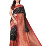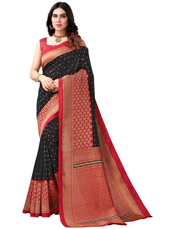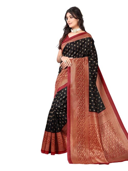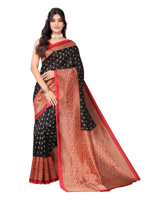 Women’s Printed Poly Silk Saree with Unstitched Blouse Piece-Black