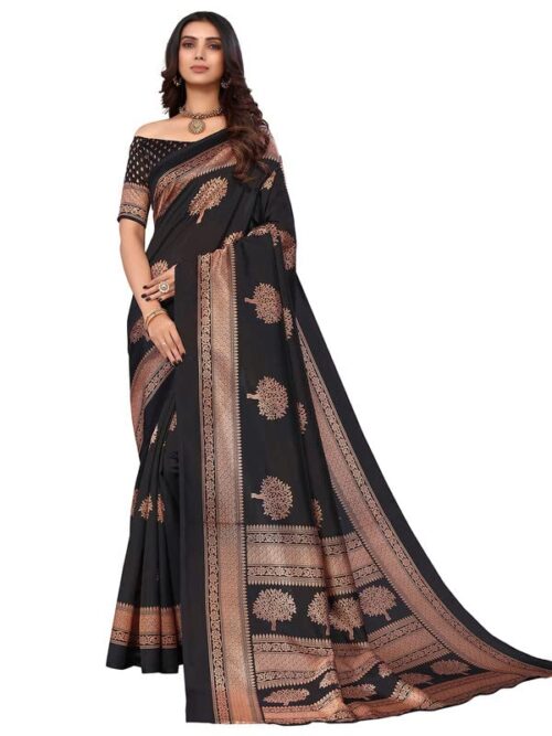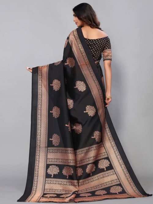 Women’s Printed Poly Silk Saree with Unstitched Blouse Piece-Black4