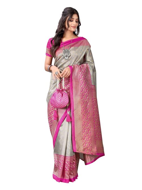 Women’s Printed Poly Silk Saree with Unstitched Blouse Piece-Dusty Grey